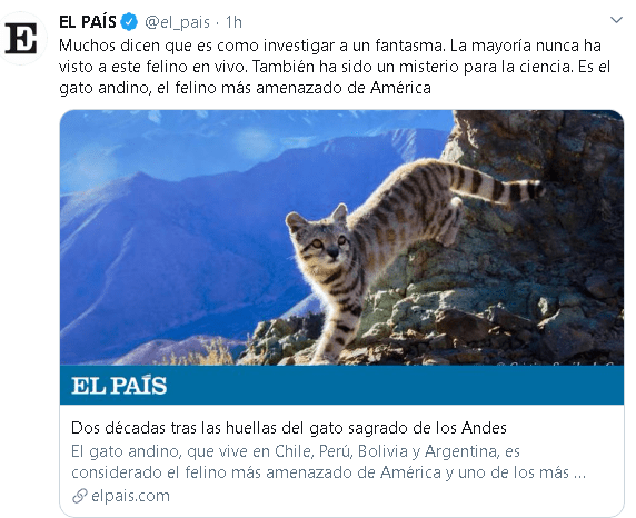 En la edición on line encontramos entre las 10 primeras noticias los siguientes temas: la información sobre el coronavirus, aunque más centrada en reacciones sociales y políticas que en la cuestión científica. Tambien aparecen dos noticias sobre biodiversidad en peligro, el estado crítico de las Tablas de Daimiel y del mencionado gato andino, cuya situación de extrema precariedad es la noticia más destacada en la sección de ciencia digital junto con el mapa de la pobreza y otras noticias sobre el último vuelo espacial desde la ISS y las matemáticas que predicen la expansión del coronavirus.